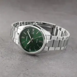 A Casio MTP-1302PD-3AV férfi karóra remek választás azoknak, akik az elegáns megjelenést és a mindennapi praktikusságot egyszerre keresik. Az ezüstszínű kialakítás kifinomult, időtálló stílust kölcsönöz, míg a zöld számlap különleges, karakteres megjelenést ad az órának.
