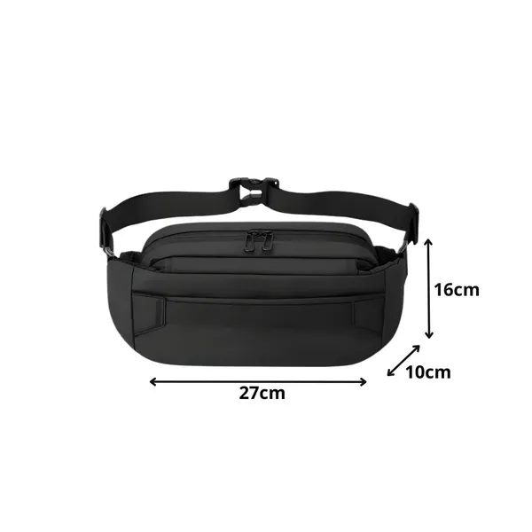 Kényelmes, könnyű deréktáska, amiben a telefon, pénztárca és iratok biztonságosan, cipzáras rekeszekben tarthatók. Az állítható pánt és a masszív csat miatt stabilan viselhető derékon, csípőn vagy vállon át – ideális edzéshez, utazáshoz és mindennapokra.