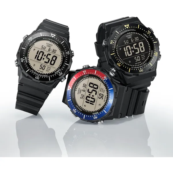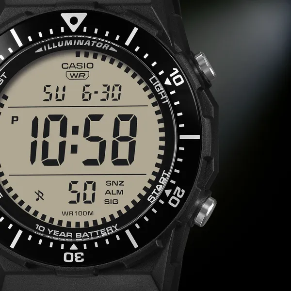 A többfunkciós kijelzőnek köszönhetően egyszerűen elérhetők a hasznos funkciók, például a világidő, a stopper, az időzítő és az ébresztés. A LED-világítás sötétben is jól láthatóvá teszi a kijelzőt, a WR100 vízállóság pedig nagyobb szabadságot ad a mindennapokban és aktív programok során.