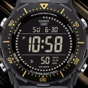 A tartós műanyag tok és szíj, valamint a hesalit üveg megbízható kialakítást nyújtanak. A WR100 vízállóság nagyobb biztonságot ad esős időben, kézmosásnál vagy aktív szabadtéri tevékenységek során.