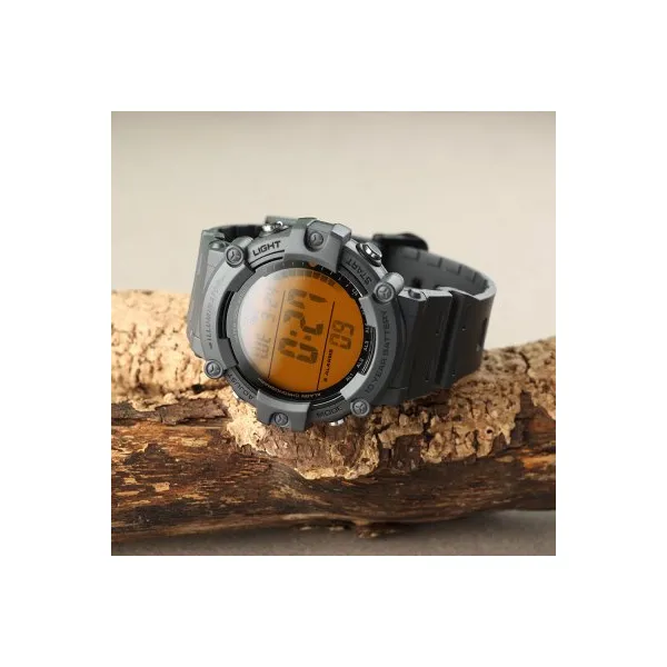 A strapabíró műanyag tok és szíj kényelmes viseletet biztosít, a vízálló kialakítás pedig nagyobb biztonságot ad a mindennapi használat során. A modell azoknak készült, akik egy sokoldalú, jól felszerelt és karakteres megjelenésű digitális órát szeretnének.