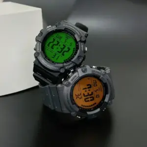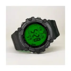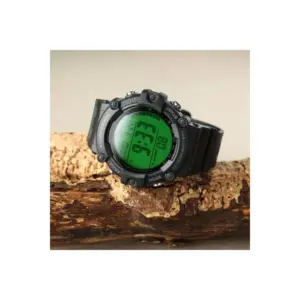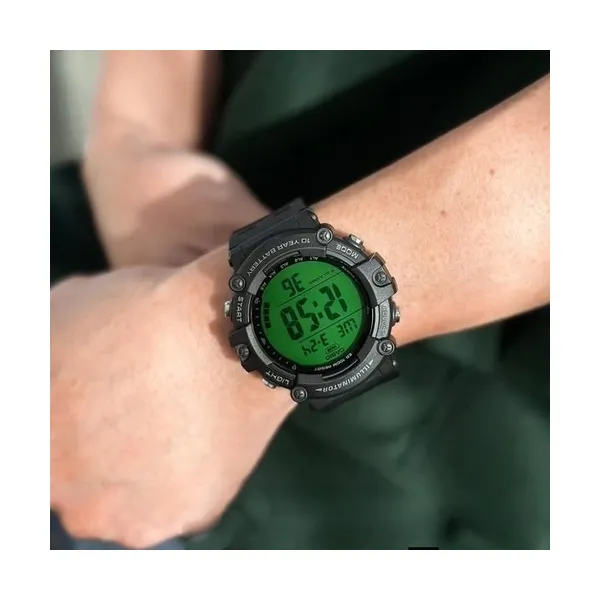Férfi digitális karóra WR100 LED világítással, zöld kijelzővel