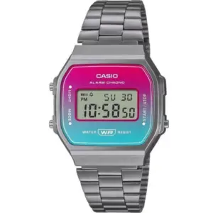 Ez a férfi karóra a klasszikus digitális stílust modern, városi megjelenéssel ötvözi. A szürke színű tok elegáns és időtálló hatást kelt, míg a multiszínű kijelző egyedi karaktert ad az órának. A jól olvasható digitális számlapnak köszönhetően az idő, a dátum és a hasznos funkciók gyorsan leolvashatók a mindennapok során.