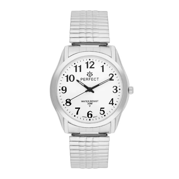 A PERFECT X410-02 klasszikus megjelenésű férfi karóra, amely letisztult stílusával jól illik mindennapi viselethez és elegánsabb öltözékhez is. Az ezüstszínű tok és a fehér számlap időtálló, könnyen kombinálható megjelenést biztosít.