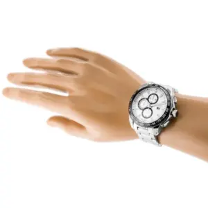 Az óra kerek tokkal, fekete gyűrűs részlettel és jól kombinálható ezüst színvilággal készült. A kibővített dátumkijelzés a hónap napját mutatja. A kisebb segédszámlapok díszítőelemek, nem aktívak.