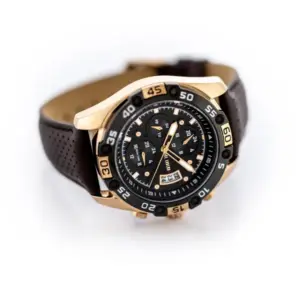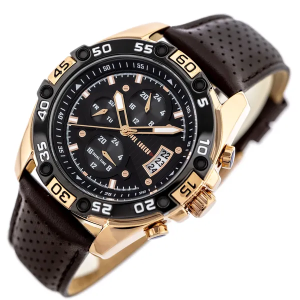 Férfi karóra bőrszíjjal, fekete számlappal, rózsaarany-fekete tok