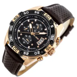 Elegáns, fekete számlapos férfi karóra kényelmes barna bőrszíjjal, amely jól illik hétköznapi és alkalmi öltözékhez is. A dátum- és naptárfunkciók, valamint az ajándék díszdoboz még praktikusabbá és vonzóbbá teszik.