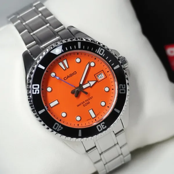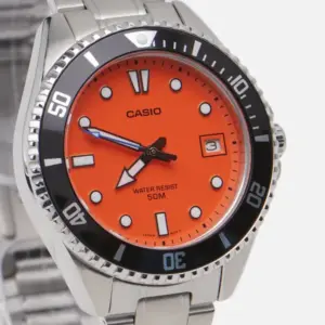 A Casio MDV-10D-4A1 férfi karóra klasszikus megjelenést és praktikus mindennapi használatot kínál egy modellben. A rozsdamentes acél tok és szíj tartós, elegáns hatást kelt, míg a narancssárga számlap karakteres megjelenést ad az órának. A forgatható lünetta, a dátumkijelzés és az ásványi üveg együtt kényelmes és megbízható választássá teszik a hétköznapokra.