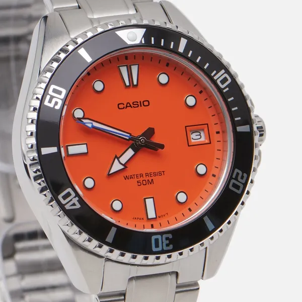 Férfi karóra Casio MDV-10D-4A1, narancs számlap, acél szíj