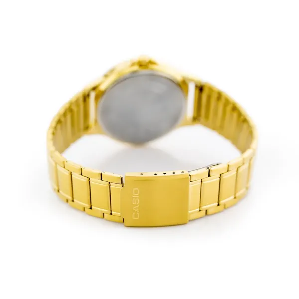 Az arany színű, rozsdamentes acél Casio kronográf karóra fekete számlappal elegáns kiegészítő, amely a japán kvarc szerkezetnek köszönhetően mindig pontos. WR30 fröccsenés-álló kialakítása és dátumkijelzője mindennapi megbízhatóságot és kényelmet kínál.