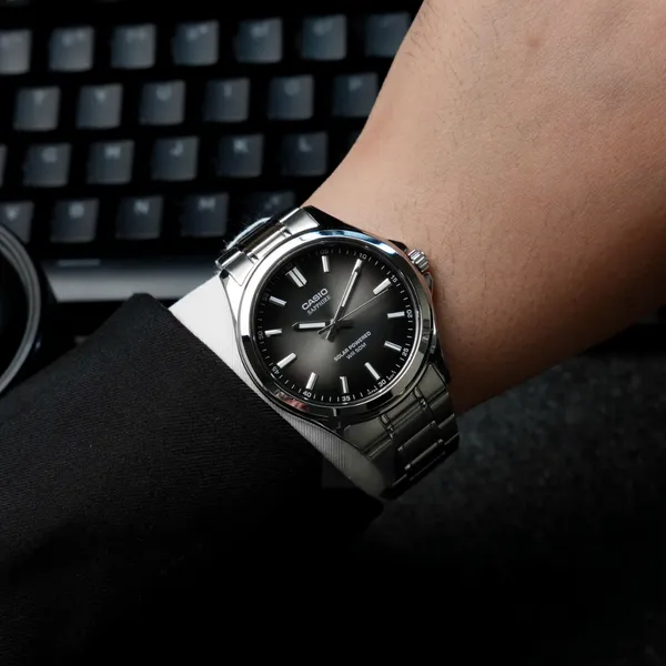 A Casio MTS-RS100D-1A férfi karóra elegáns megjelenést, megbízható működést és modern technológiát kínál egyetlen időtálló modellben. Letisztult, fekete számlapja és a klasszikus ezüstszínű tok harmonikus összhatást teremt, így a karóra könnyen illeszkedik mind hétköznapi, mind alkalmi öltözékhez.