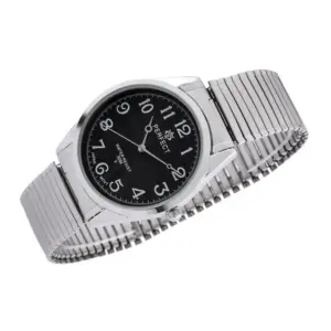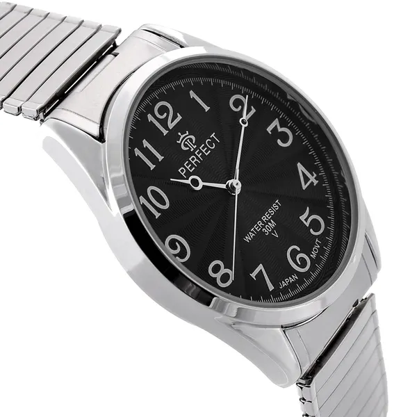 Férfi karóra elegáns, letisztult megjelenéssel, amely ideális választás mindennapi viseletre és alkalmi öltözékhez is. Az ezüstszínű tok és a fekete számlap időtálló, könnyen kombinálható stílust képvisel.