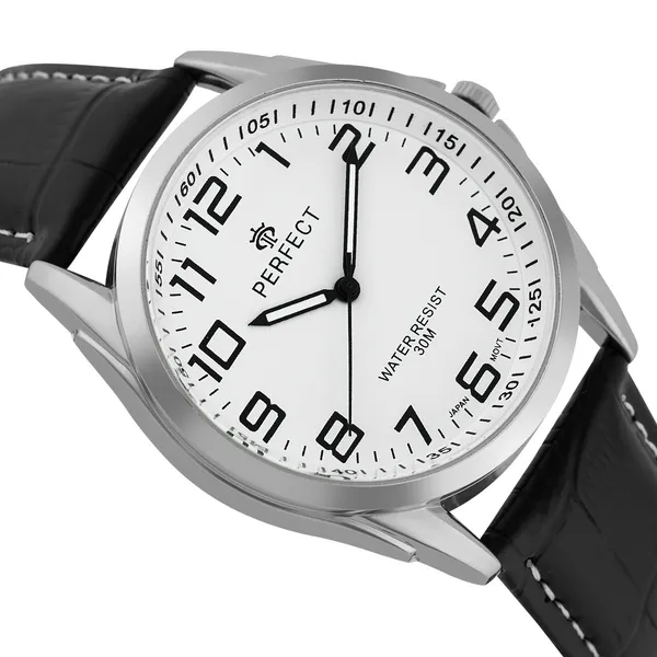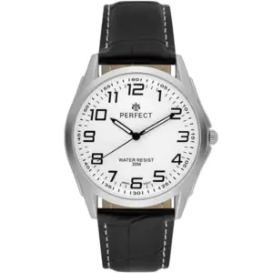 Elegáns, letisztult megjelenésű férfi karóra, amely kiváló választás mindennapi viselethez és alkalmi öltözékhez is. A fehér számlap, a fekete számok, az ezüstszínű tok és a fekete szíj klasszikus összhatást teremtenek. A megbízható Miyota japán szerkezet pontos működést biztosít, míg a minerálüveg segít védeni az órát a mindennapi használat során.