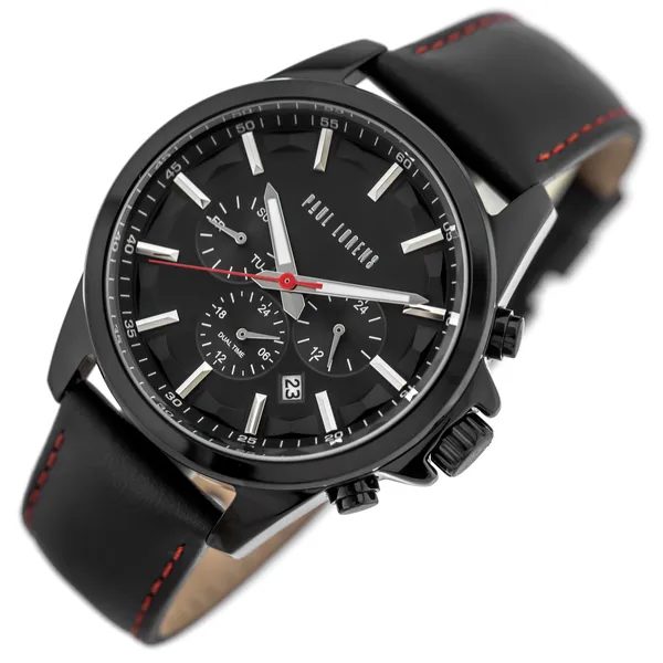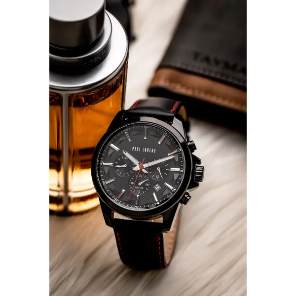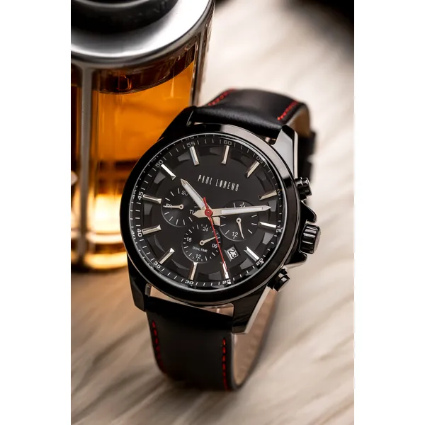A Paul Lorens PL20010A-1A3 férfi karóra az elegáns megjelenést és a praktikus funkciókat ötvözi. Olasz ihletésű formavilága, gondos kidolgozása és megbízható működése ideális választássá teszi mindennapi viselethez és alkalmi öltözékhez is. A fekete számlap, a fekete tok és a fekete, piros varrású bőrszíj modern, karakteres összhatást ad.