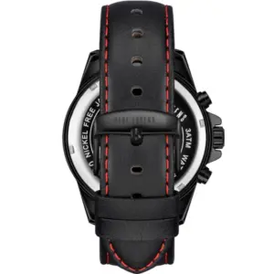 Férfi karóra fekete bőrszíjjal, dual time, dátum, 44 mm