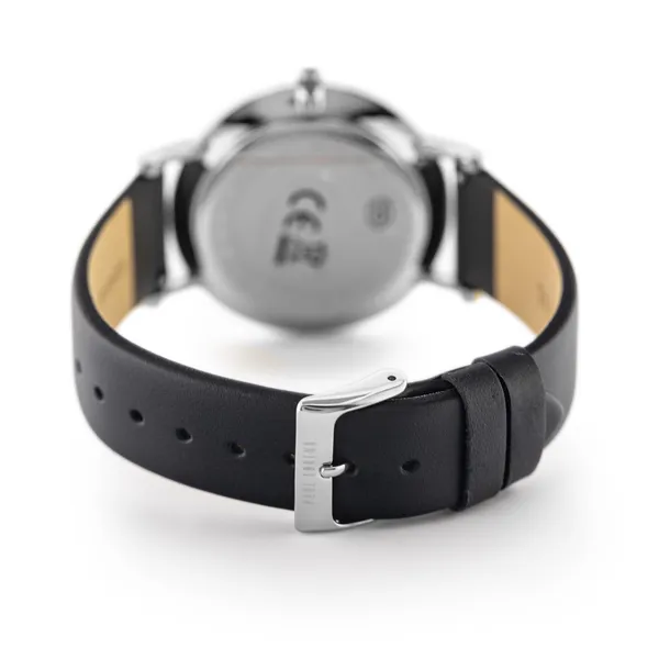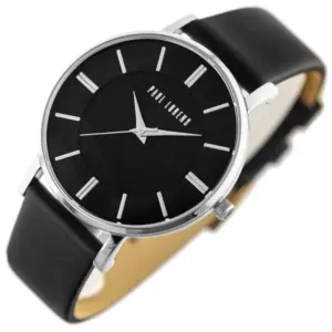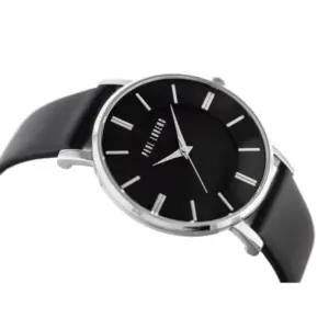 Elegáns, vékony kialakítású férfi karóra, amely fekete bőrszíjával és letisztult számlapjával sokoldalúan viselhető munkában és alkalmakon is. A megbízható japán kvarcszerkezet és a tartós bevonat kényelmes, hosszú távú használatot biztosít.