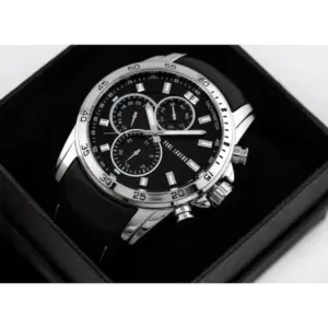 Elegáns megjelenést és kényelmes viseletet kínál fekete bőrszíjjal, jól olvasható számlappal és praktikus dátumkijelzéssel. A megbízható japán kvarc szerkezet és az ajándék díszdoboz különösen vonzó választássá teszi.