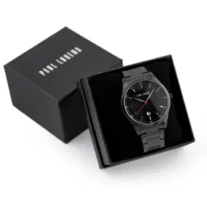 Elegáns, fekete kivitelű férfi karóra japán kvarc szerkezettel és praktikus dátumkijelzéssel, amely megbízható társ a mindennapokban. A fém szíj, az antiallergén bevonat és az ajándék díszdoboz kényelmes, stílusos választássá teszi.