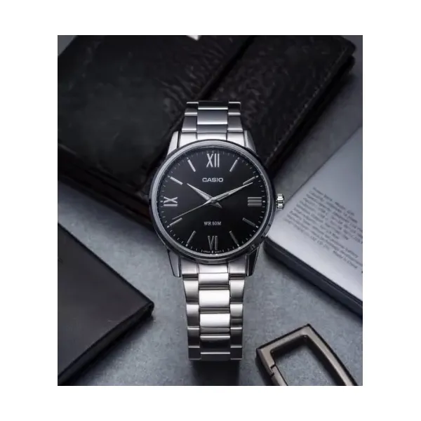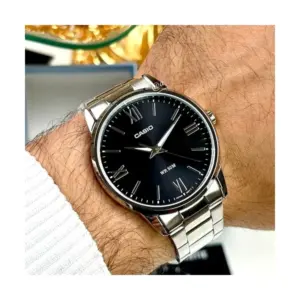 Letisztult, jól olvasható férfi karóra fekete számlappal, rozsdamentes acél szíjjal és kényelmes, sokoldalúan viselhető kialakítással. A kvarc szerkezet, a világító mutatók és az 5 ATM vízállóság megbízható társává teszik a mindennapokban.