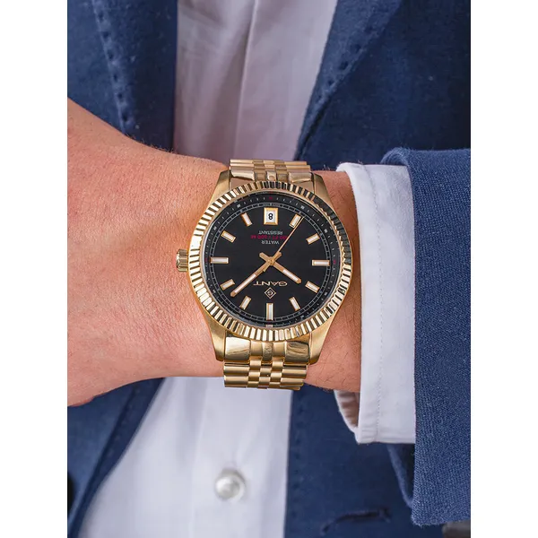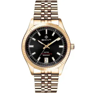 Elegáns, aranyszínű acél kivitele és fekete számlapja stílusos megjelenést ad a mindennapokhoz és alkalmakra is. A dátumkijelzés, a pontos kvarc szerkezet és a WR100 vízállóság kényelmes, megbízható használatot biztosít.
