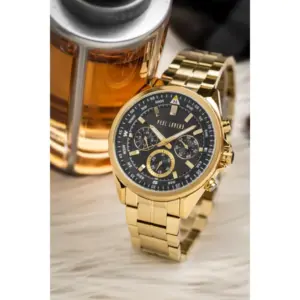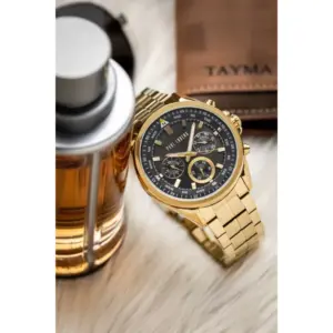 Elegáns, fekete-arany megjelenésű karóra, amely jól illik üzleti és alkalmi öltözékhez is. A rozsdamentes acél kivitel, a kronográf és a dátumkijelzés egyszerre kínál stílust és praktikus mindennapi használatot.