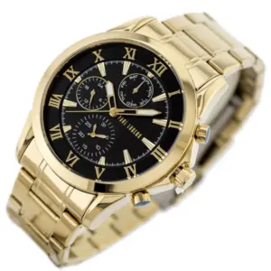 Férfi karóra fekete számlappal, aranyszínű fém szíjjal, 45 mm