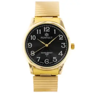 Férfi karóra fekete számlappal, aranyszínű fém szíjjal