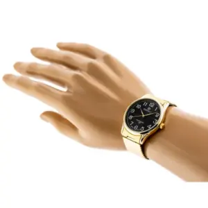 A rugalmas fém szíjnak köszönhetően gyorsan felvehető, a fekete számlap és az aranyszínű kivitel pedig elegáns, jól kombinálható megjelenést ad. A pontos kvarc szerkezet és az ásványi üveg megbízható, praktikus választássá teszi a mindennapokra.