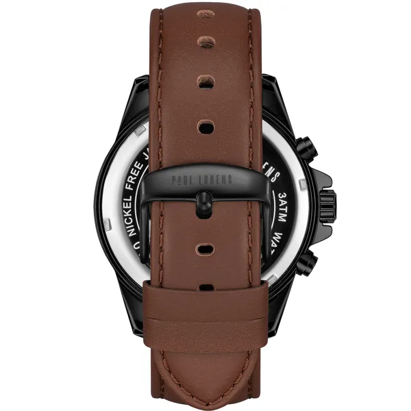 A Paul Lorens PL20010A-1B2 férfi karóra az elegáns megjelenést és a mindennapi praktikusságot ötvözi. Olaszos ihletésű formavilága, gondosan kidolgozott részletei és megbízható кварc szerkezete miatt kiváló választás azoknak, akik stílusos, mégis jól használható órát keresnek. A fekete számlap, a fekete tok és a barna bőrszíj harmonikus összhatást ad, így az óra üzleti és hétköznapi öltözékhez is remekül illik.