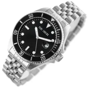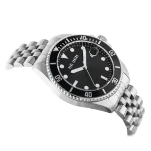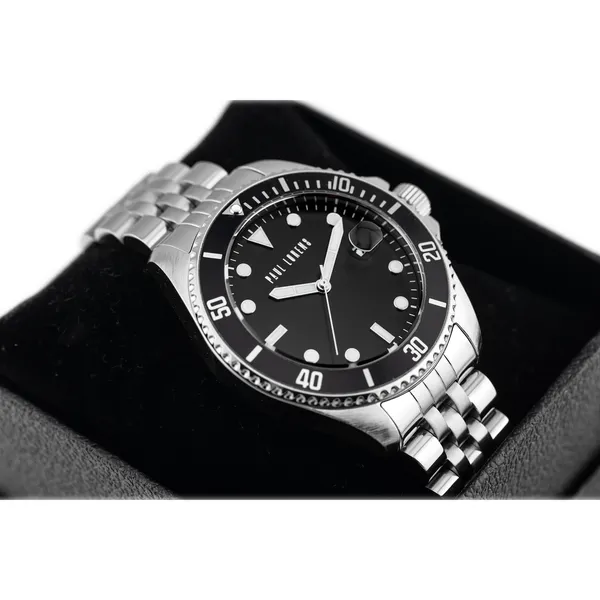 Férfi karóra fekete számlappal, ezüst fém szíjjal, 43 mm