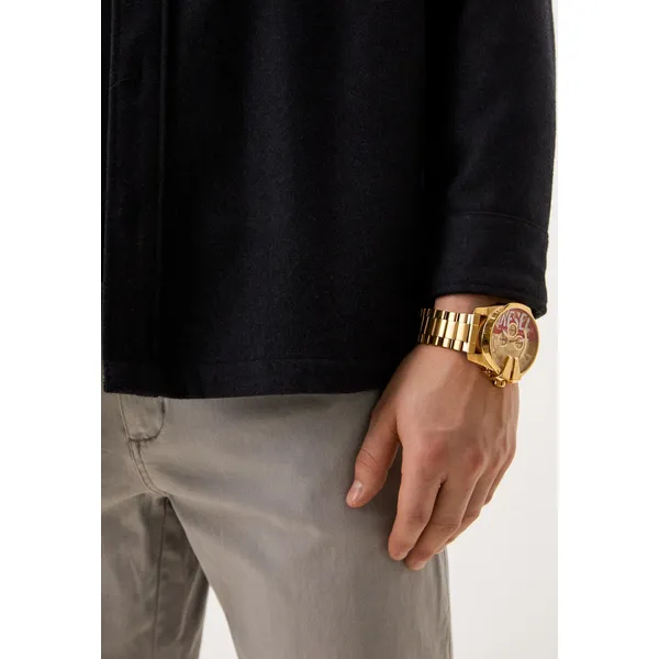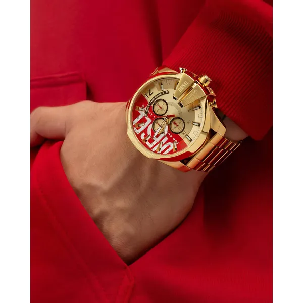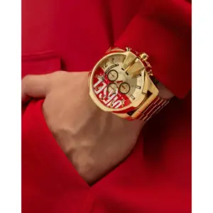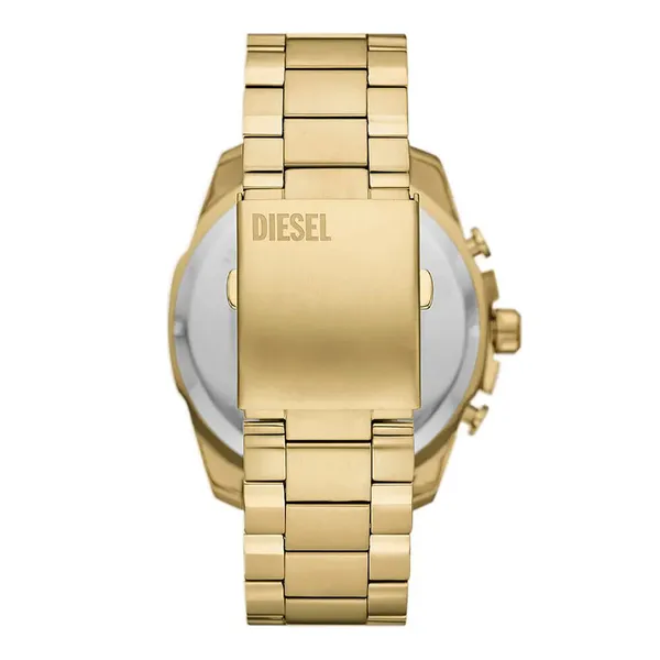 A Diesel Mega Chief DZ4642 férfi karóra japán кварc szerkezettel működik, elemes meghajtással. Az aranyszínű számlapot és a karakteres arany-piros részleteket nagy ellenállóságú ásványi üveg védi. A tok és a szíj aranyszínű rozsdamentes acélból készült, amely tartós, mutatós és kényelmes választás a mindennapokra.