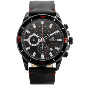 A Perfect férfi karóra stílusos megjelenést és megbízható működést kínál a mindennapokra. A klasszikus fekete színvilág, a fekete számlap és a fekete bőrszíj elegáns, sokoldalúan viselhető választássá teszi üzleti és hétköznapi öltözékhez egyaránt.