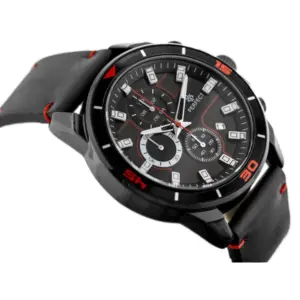 Elegáns, fekete kivitelű férfi karóra pontos kvarc szerkezettel, kronográffal és dátumkijelzéssel. A kényelmes bőrszíj, a jól kombinálható dizájn és a díszdobozos csomagolás kiváló választássá teszi mindennapi viseletre vagy ajándéknak.
