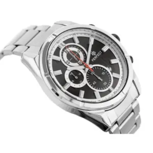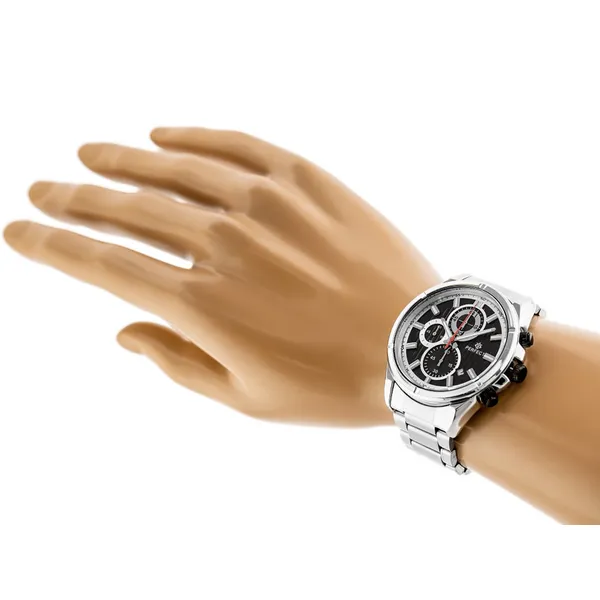 A Perfect karórák kedvező áruk, megbízható működésük és sokoldalú stílusuk miatt népszerű választások a mindennapokra és alkalmi viselethez is. Ez a férfi modell sportosan elegáns megjelenést kínál fekete számlappal, ezüstszínű tokkal és fém szíjjal.