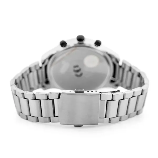 Elegáns és sportos választás pontos japán kvarc szerkezettel, kronográffal és dátumkijelzéssel. Az ezüstszínű fém szíj, a fekete számlap és a díszdoboz együtt stílusos megjelenést és ajándékozásra kész kiszerelést ad.