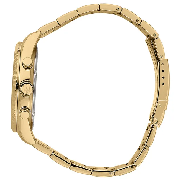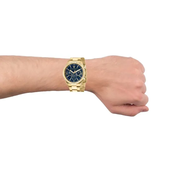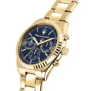 A Maserati Competizione R8853100026 elegáns férfi karóra, amely sportos karakterével és kifinomult megjelenésével egyaránt kitűnik. A sötétkék számlapot ásványi üveg védi, a segédszámlapok pedig a hét napját, a hónap napját és a 24 órás időjelzést mutatják.