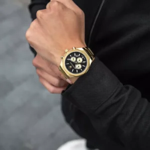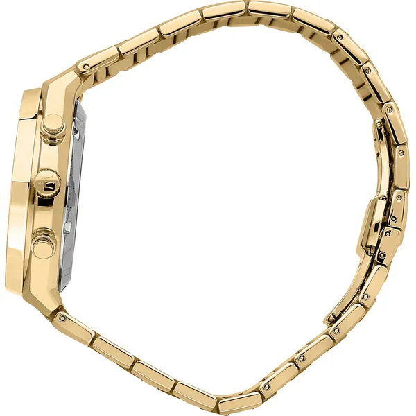 Az aranyszínű, rozsdamentes acél tokkal és karkötővel készült, fekete számlapos karóra kifinomult, mégis sportos kiegészítője mindennapi és üzleti megjelenésének. Kronográfja, naptárfunkciója, megbízható kvarc szerkezete és 10 ATM vízállósága gondoskodik róla, hogy bárhol, bármikor pontosan kövesse időbeosztását, legyen szó irodáról, edzésről vagy nyaralásról.
