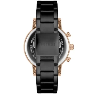 Kifinomult férfi karóra japán Miyota szerkezettel, rózsaarany tok és fekete acél szíj látványos párosával; Dual Time és dátum funkcióival stílusosan igazodsz a napirendedhez.