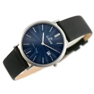 Elegáns, letisztult megjelenésű férfi karóra vékony kivitelben, amely hétköznapi és alkalmi viselethez is ideális. A megbízható, Japánban gyártott Miyota kvarc szerkezet pontos időmérést biztosít, míg a sötétkék számlap és a fekete bőrszíj időtálló, stílusos összhatást teremt.