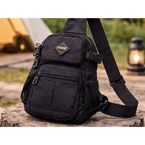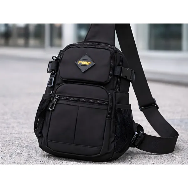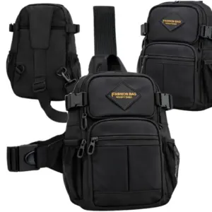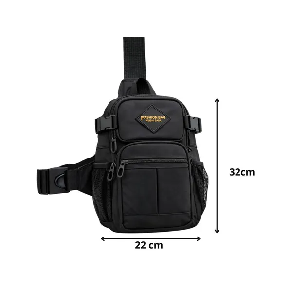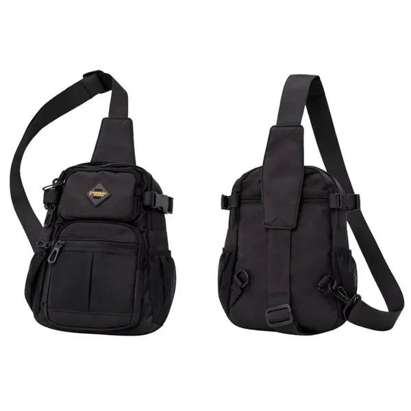Férfi keresztpántos válltáska több zsebbel, fekete, cipzáras