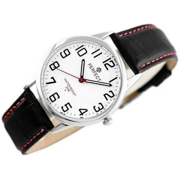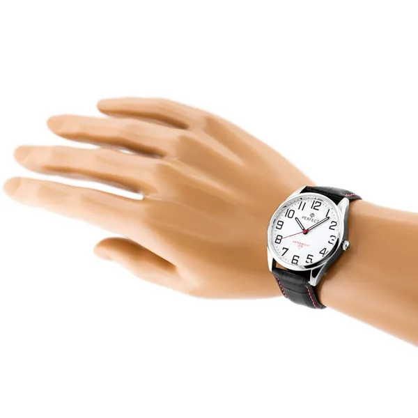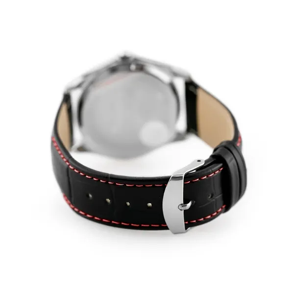 Elegáns, könnyen kombinálható férfi karóra fekete bőrszíjjal és letisztult fehér számlappal, amely üzleti és hétköznapi viselethez is remek választás. A japán kvarc szerkezet pontos működést, az ásványi üveg pedig megbízható mindennapi használatot biztosít.