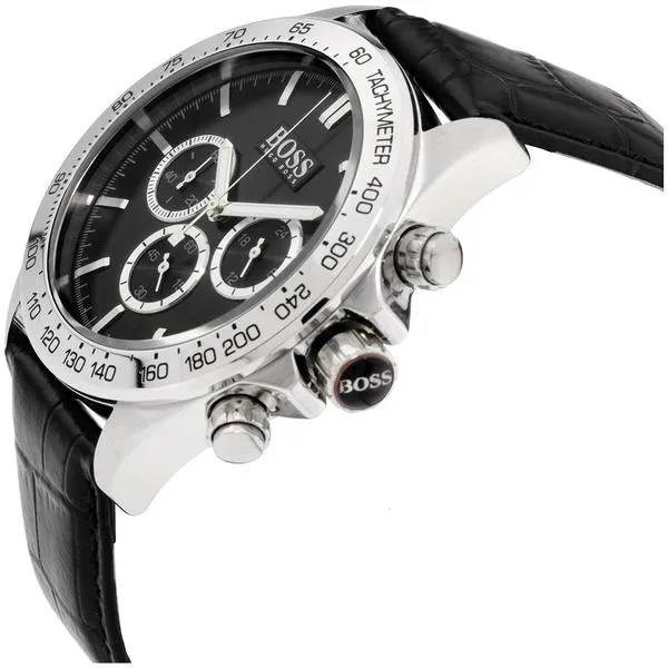 Férfi kronográf karóra bőrszíjjal, fekete számlappal, 44 mm
