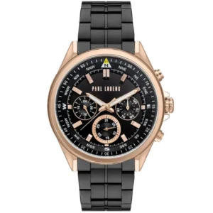 Az olasz ihletésű, rozsdamentes acélból készült férfi kronográf karóra tökéletesen ötvözi a klasszikus eleganciát és a modern formavilágot. A fekete számlapot és a rozéarany IPS bevonatú tokot a japán Miyota kvarc szerkezet hajtja, amely megbízható pontosságot biztosít a mindennapokban.