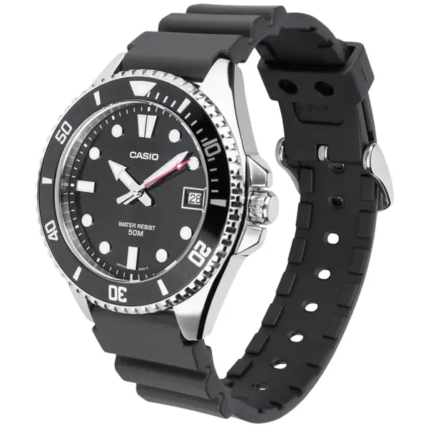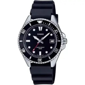 A Casio MDV-10-1A1VEF férfi karóra sportos búvár stílusú modell, amely praktikus kialakításával és időtálló megjelenésével ideális választás mindennapi viseletre. A 316L nemesacél tok ellenáll a nedvességnek, az izzadságnak és a mindennapi külső hatásoknak, míg a fekete számlapot ásványi üveg védi a karcolódástól.