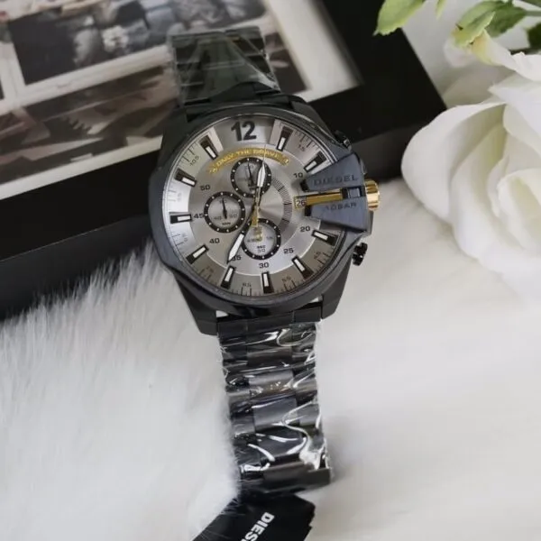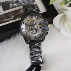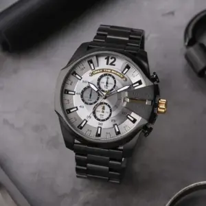 Ez a férfi karóra elegáns megjelenést ötvöz modern, karakteres formavilággal. Az 51 mm széles és 14 mm vastag, nemesacél tok erőteljes, látványos hatást kelt, így ideális választás azoknak, akik szeretik a markáns kiegészítőket. A fekete számlap és a hangsúlyos indexek kifinomult, mégis határozott összhatást adnak, ezért hétköznapi és alkalmi viselethez egyaránt remekül illik.