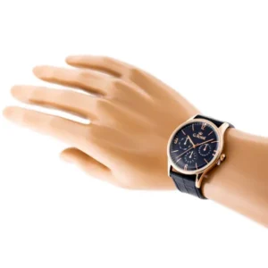 • Színek: sötétkék számlap és bőrszíj, rózsaarany tok és indexek