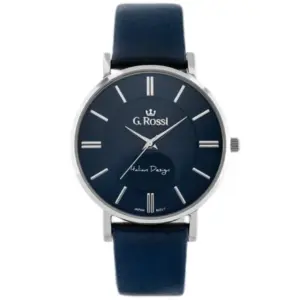 Pontos japán kvarc szerkezete, ásványi üvege és kényelmes bőrszíja megbízható társ a mindennapokban. A sötétkék számlap és az ezüstszínű tok elegáns, könnyen kombinálható megjelenést biztosít.