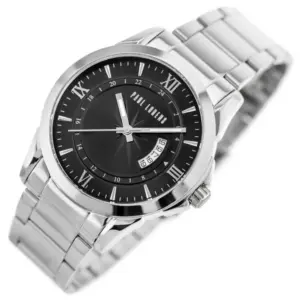 Férfi kvarc karóra, ezüst acél szíjjal, fekete tok, 45 mm