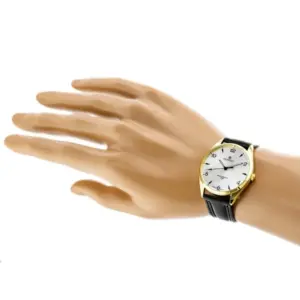 Elegáns, hosszú bőrszíjas férfi karóra japán MIYOTA kvarc szerkezettel, amely megbízható működést és kényelmes mindennapi viseletet kínál. Az ezüst számlap, az aranyszínű tok és a mellékelt díszdoboz stílusos választássá teszi saját használatra vagy ajándéknak.