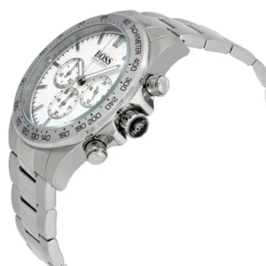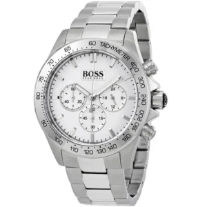 Ezüst színű acél tok és szíj, letisztult fehér számlap: elegáns választás munkához és alkalmakra is. A kronográf, tachiméter és 24 órás kijelzés praktikus a mindennapokban, a WR50 vízállóság pedig megóvja esőben és fröccsenésnél.
